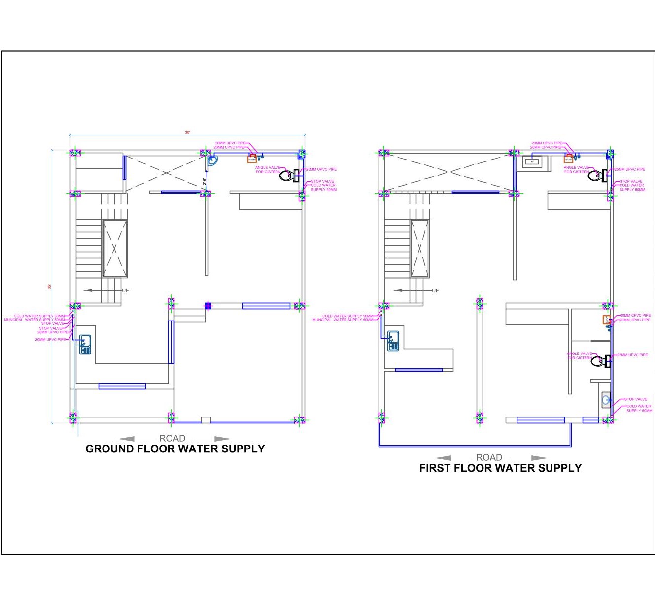 β’ Electrical Point Markings, Water Supply & Drainage Lines